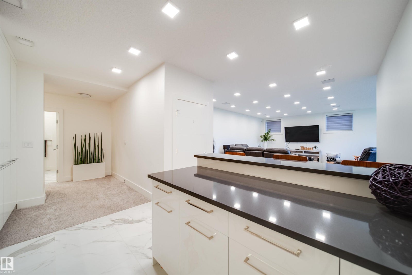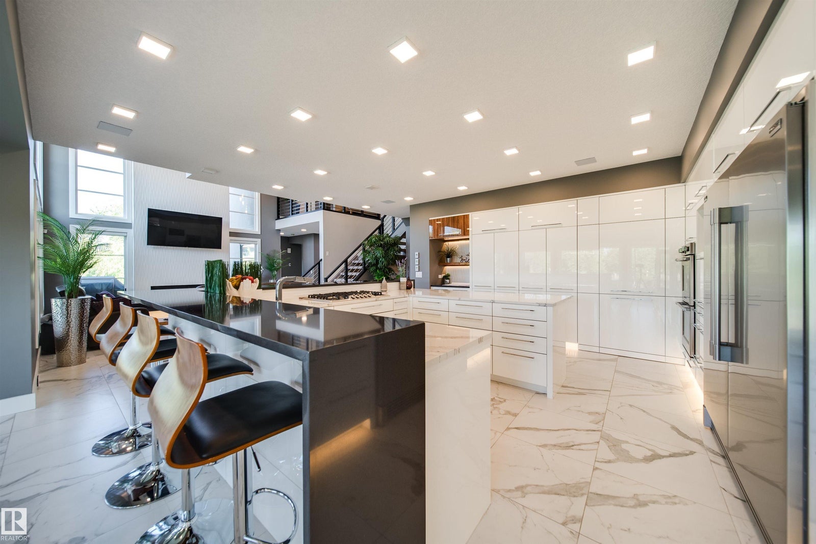 Award-winning show home by Vicky’s Homes (best build under $2m) ready for the buyer that has a budget for the best! TRIPLE CAR GARAGE with room for 6 via lifts, 4 beds total + main floor den/bed, 5 baths, fully finished & backing pond/greenspace with a large SW yard! This home is loaded and a must see, located in the community of Keswick which is nestled between parks, ponds, trails & the river. The expansive main floor brings in plenty of natural light with the 2 storey vault but adds warmth with the heated floor tiles. The massive kitchen is an entertainers dream featuring built in appliances, lots of cabinetry & a special U shaped island where everyone will gather. Steps away is a large deck with built in bbq & custom built automated pergola. Upstairs the 3 beds all have their own bath with the primary having a balcony, large closet and ensuite with steam shower & multiple vanities. The basement is finished with a wet bar, rec room & 4th bed - Automation/blinds/control4 throughout + und. sprinklers!