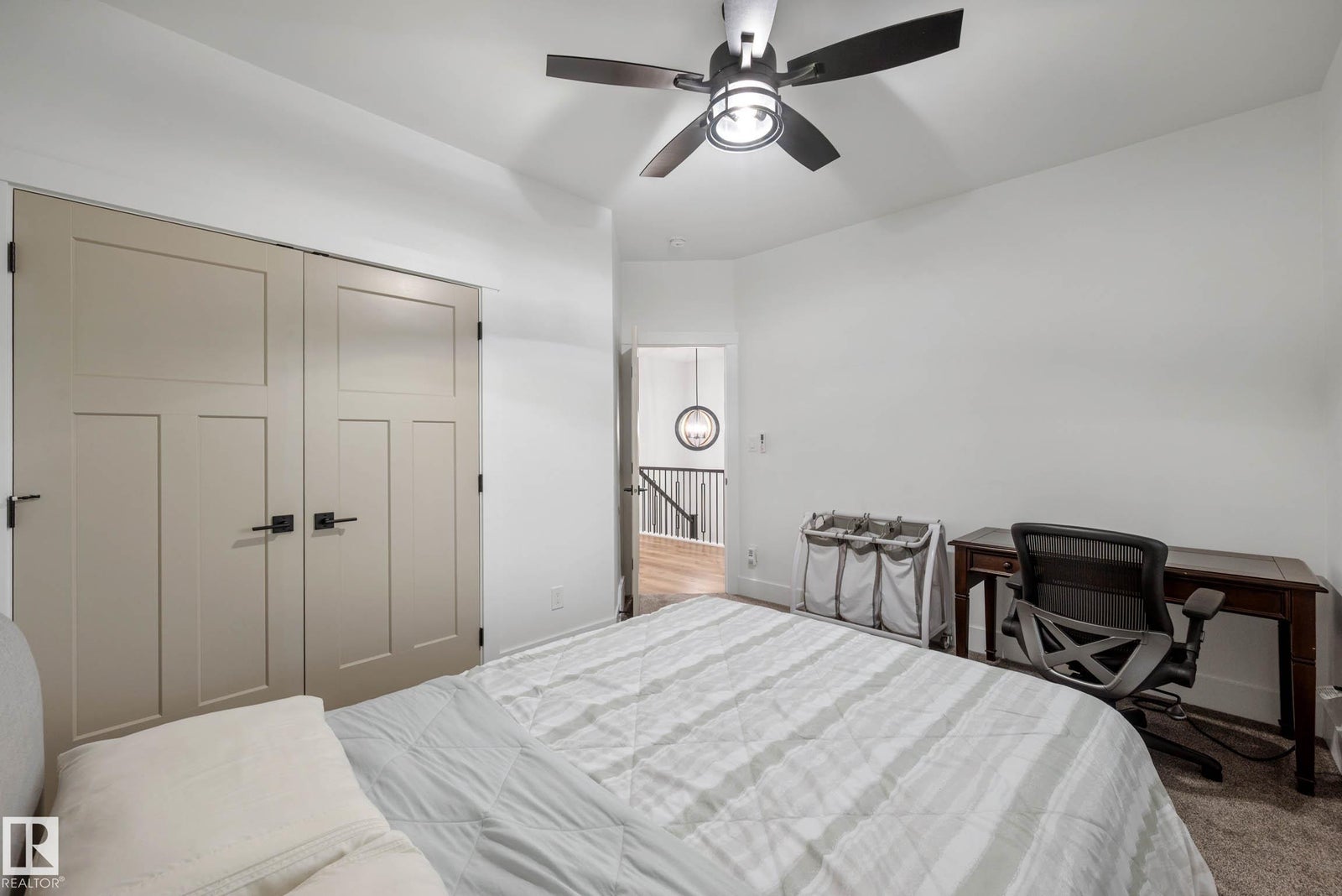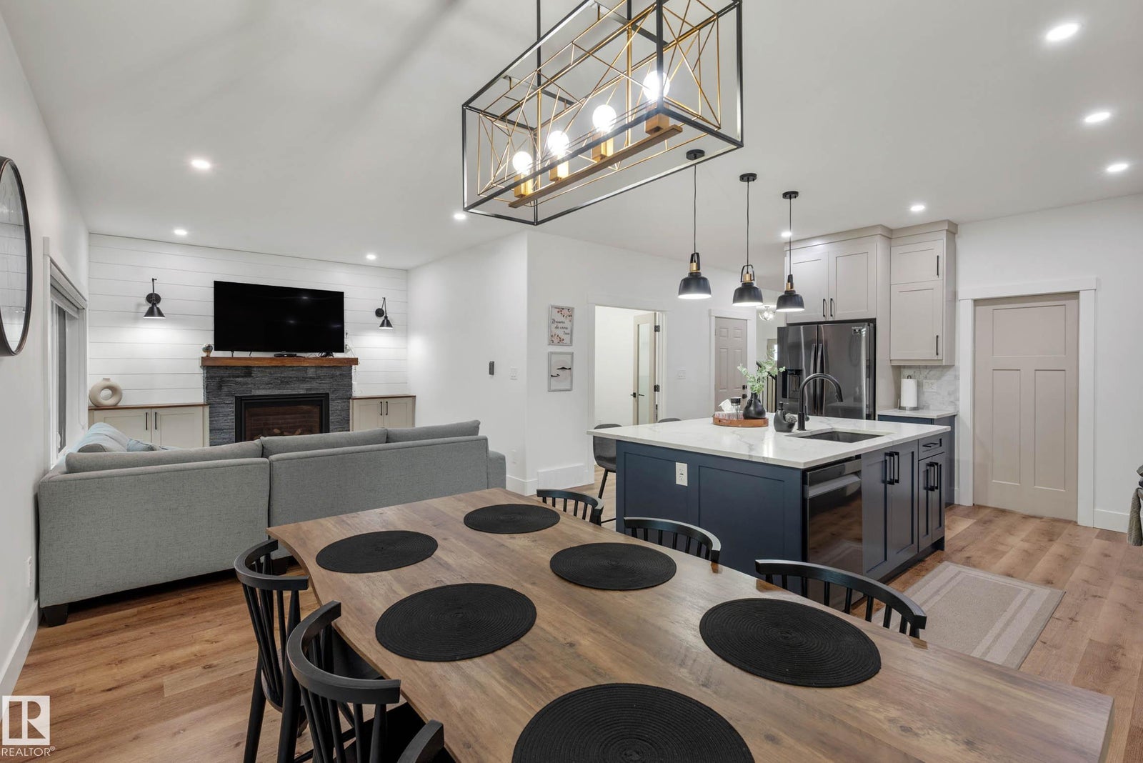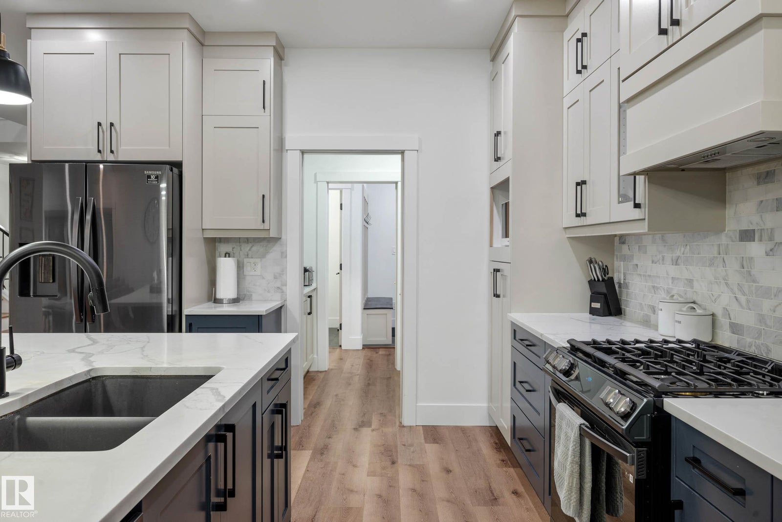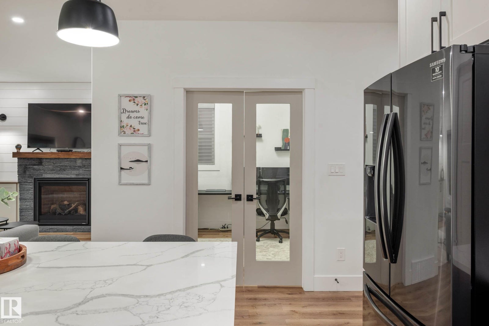 CUSTOM BUILT HOME WITH 2 BED LEGAL SUITE ACROSS FROM A POND! Step inside to a spacious entryway and elegant iron spindle staircase. Off the foyer: a stylish 2 pc bath with quartz counters, a large mudroom, access to your double attached garage, and a walkthrough pantry. The chef-inspired kitchen boasts black stainless appliances, gas range, floor-to-ceiling two-tone cabinets, and a large quartz island. The living room features a cozy stone fireplace wall—perfect for long winter nights. A main floor den adds flexible space for a home office or playroom. Upstairs offers a bright bonus room, upstairs laundry, two bedrooms, a 4 pc bath, and a stunning primary retreat with a luxurious 5 pc ensuite. The LEGAL BASEMENT SUITE has its own entrance and laundry, with two generous bedrooms, a full kitchen with quartz counters and stainless steel appliances, a 4 pc bath - A perfect mortgage helper! Quick access to all amenities, parks, paths and green space!