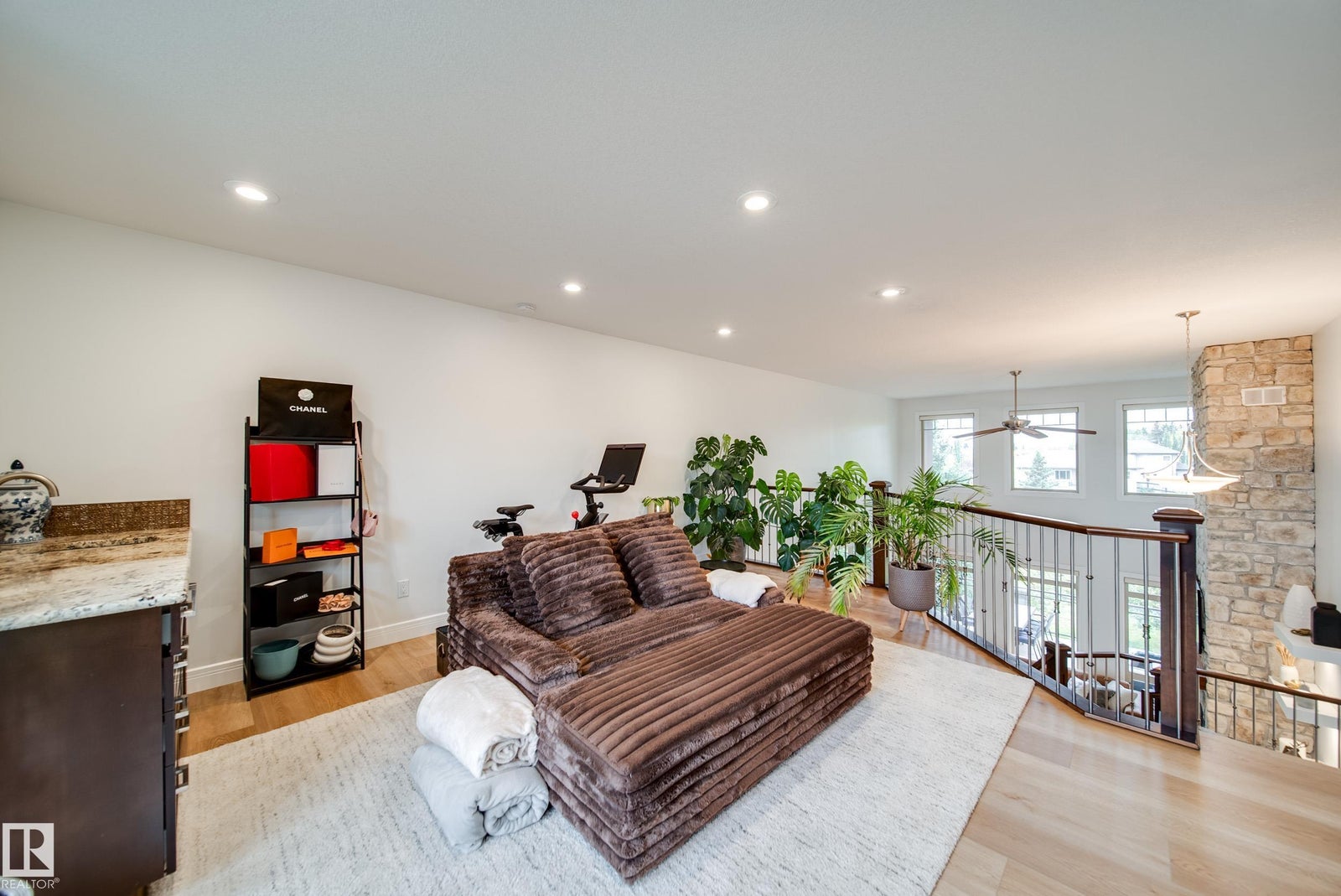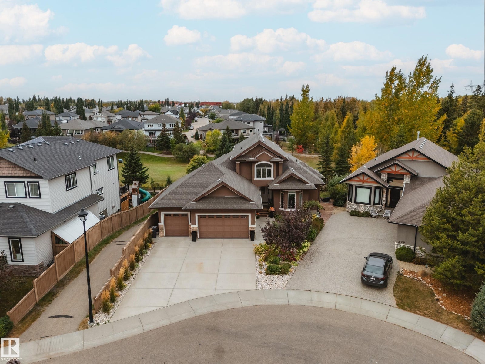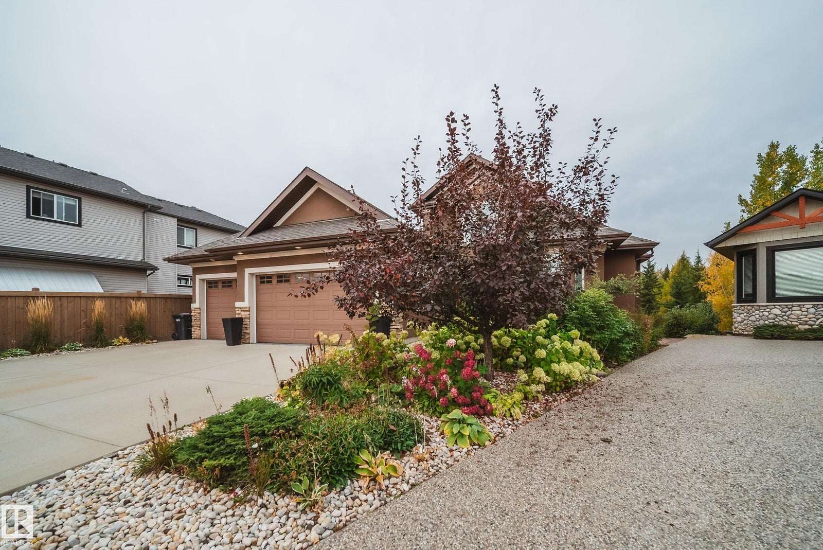WALKOUT | TRIPLE HEATED GARAGE | BASEMENT BAR | BACKS GREENSPACE | NEW FLOORING AND NEW PAINT! This custom-built bungalow with loft is the perfect blend of luxury and function. The main floor impresses with soaring 18’ ceilings, a wall of windows with electric blinds, and a stone-facing wood-burning fireplace that can heat the entire main floor. Custom LVP flooring, granite counters, wood staircases, a bar cabinet in the loft, walk-through pantry, office, and a spa-inspired primary suite with Travertine tile, jetted tub, and granite vanity complete the space. The walkout basement features in-floor heating, gas fireplace, wet bar, new flooring, 2 bedrooms, and a bath. Exterior highlights include acrylic stucco, no-maintenance decks with glass railings, gas BBQ hookups, custom blinds, and a west-facing yard backing greenspace and a city rink in winter. Added bonuses: A/C, on-demand hot water, upgraded appliances, and more. Minutes to the airport or quick access to Edmonton!