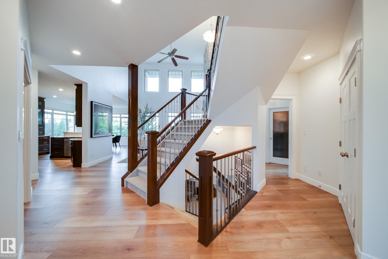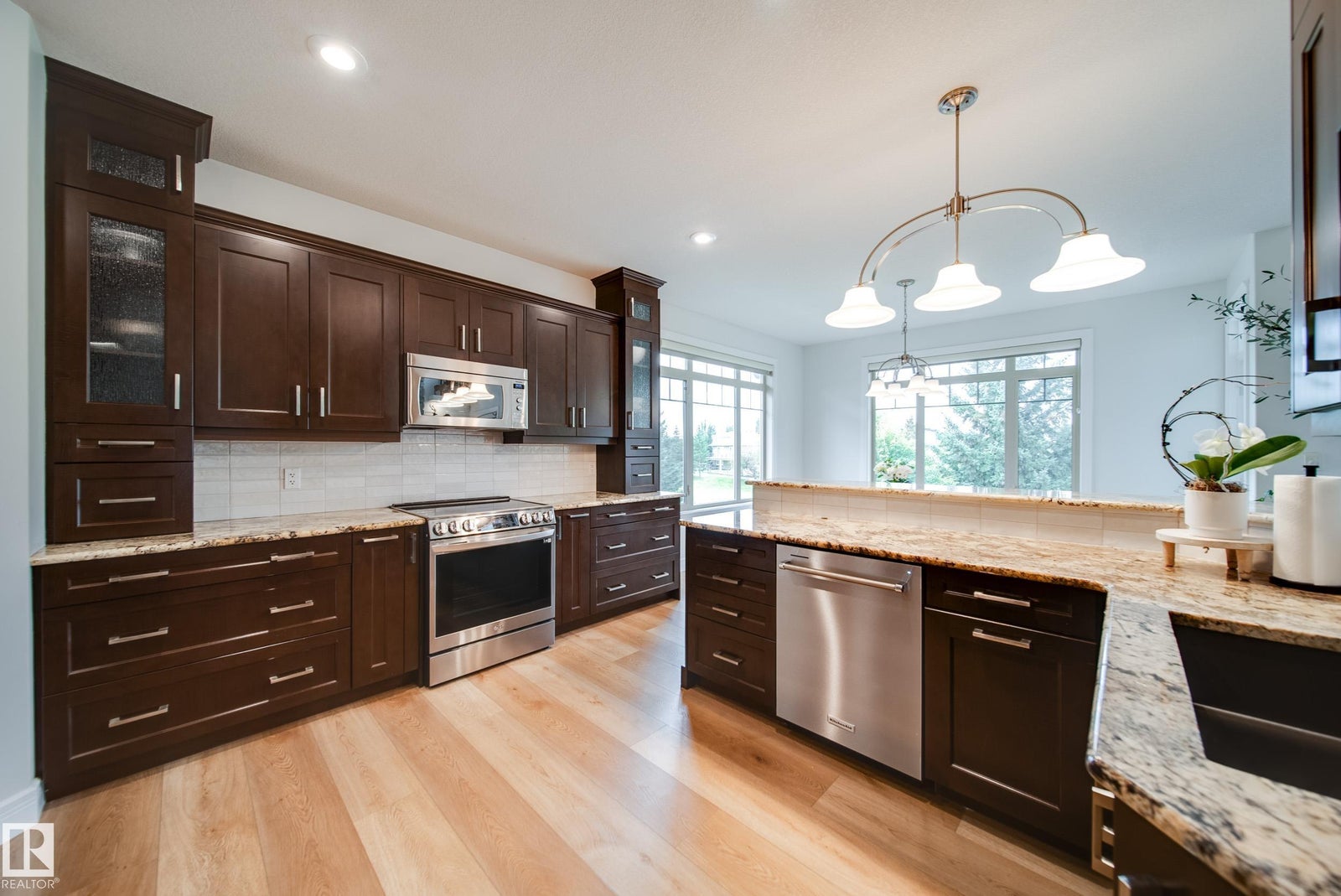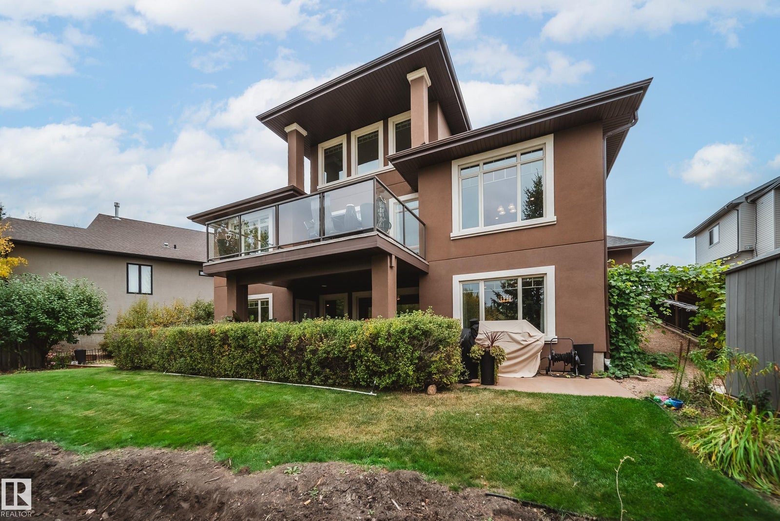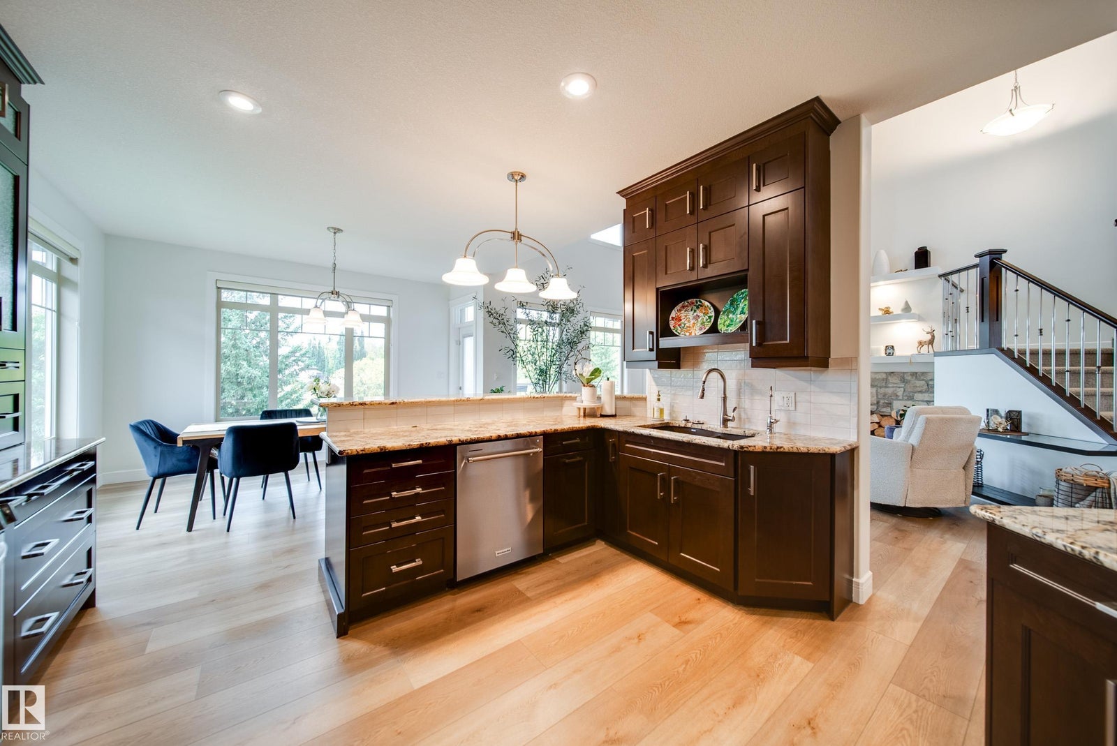 WALKOUT | TRIPLE HEATED GARAGE | BASEMENT BAR | BACKS GREENSPACE | NEW FLOORING AND NEW PAINT! This custom-built bungalow with loft is the perfect blend of luxury and function. The main floor impresses with soaring 18’ ceilings, a wall of windows with electric blinds, and a stone-facing wood-burning fireplace that can heat the entire main floor. Custom LVP flooring, granite counters, wood staircases, a bar cabinet in the loft, walk-through pantry, office, and a spa-inspired primary suite with Travertine tile, jetted tub, and granite vanity complete the space. The walkout basement features in-floor heating, gas fireplace, wet bar, new flooring, 2 bedrooms, and a bath. Exterior highlights include acrylic stucco, no-maintenance decks with glass railings, gas BBQ hookups, custom blinds, and a west-facing yard backing greenspace and a city rink in winter. Added bonuses: A/C, on-demand hot water, upgraded appliances, and more. Minutes to the airport or quick access to Edmonton!