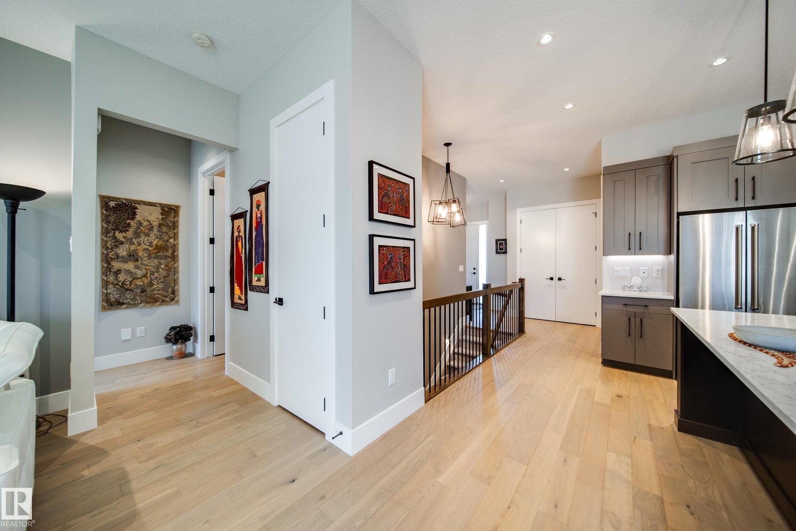 This former SHOW HOME blends high-end design with effortless living in the heart of Keswick. Tucked into a quiet cul-de-sac, this executive half-duplex bungalow offers 2900 sq ft of impeccably finished living space, fully air-conditioned and move-in ready. Soaring 10’ ceilings lead to a dream kitchen with quartz counters, built-in appliances, a prep sink and a butler’s pantry made for entertainers. The open living and dining area is warm and inviting, anchored by a sleek linear fireplace and a private study. The primary suite is a retreat — spa-style ensuite, walk-through closet and direct access to laundry. Downstairs, 9’ ceilings frame a bright rec room with wet bar, 2 bedrooms and a 4 pc bath. Details that matter: maple railing with iron spindles, black exterior windows, custom mudroom built-ins, concrete party wall with Roxul insulation, and a heated dbl garage with floor drain, H/C water, epoxy and lift-ready height. No condo fees, well below new build cost, and barely lived in — pride of ownership!