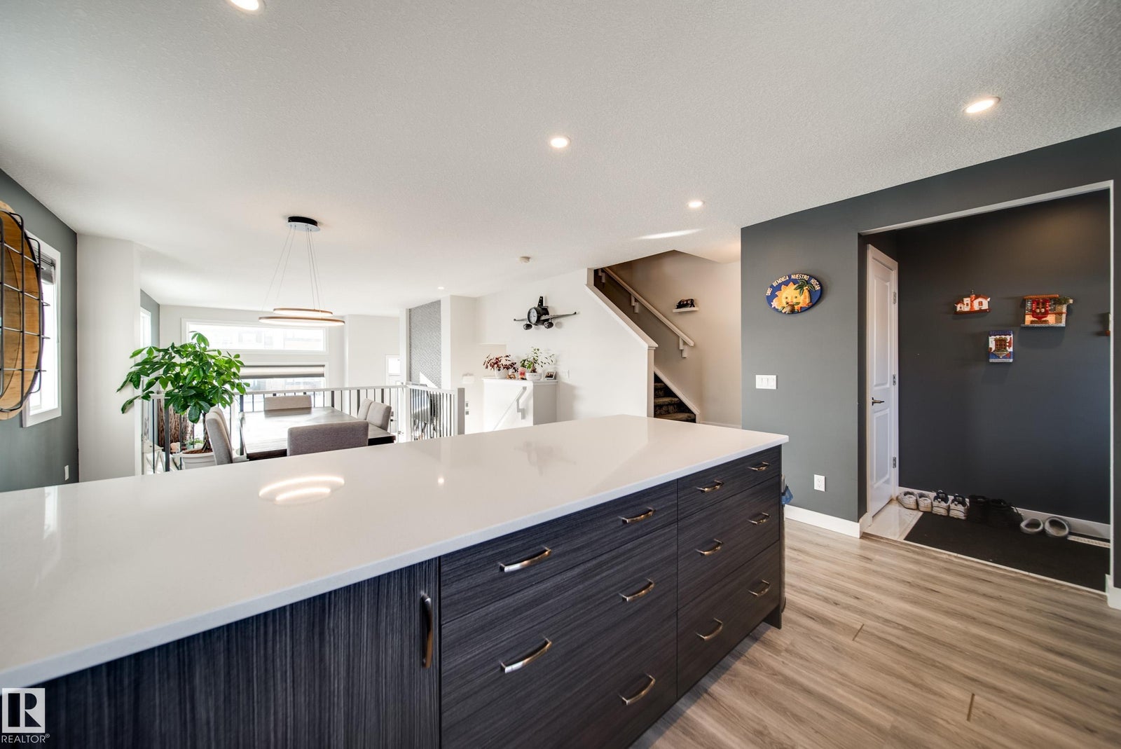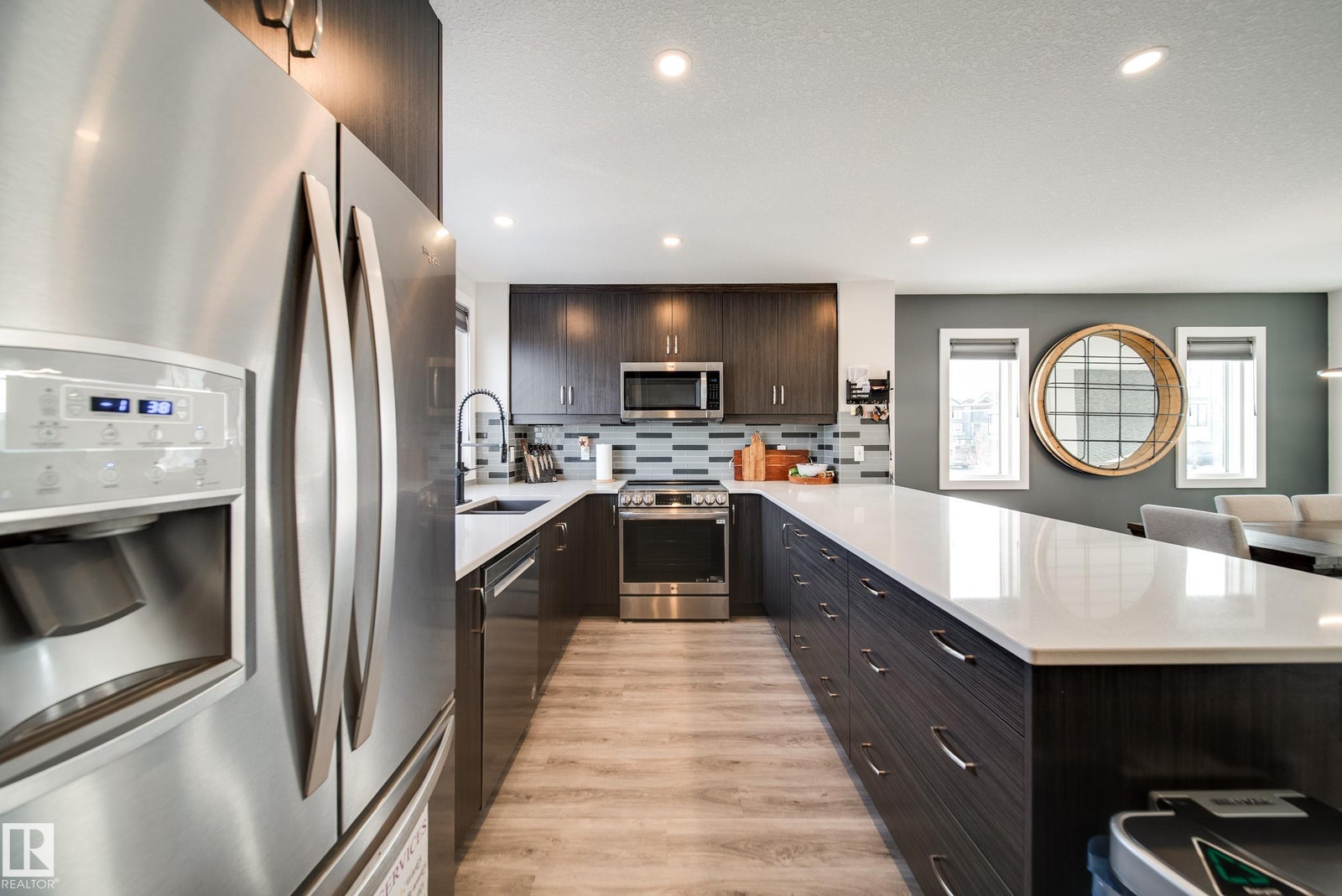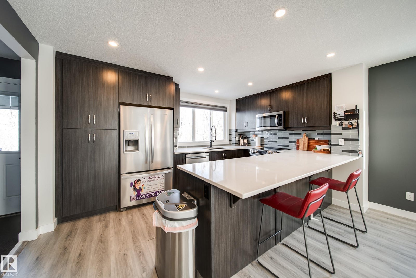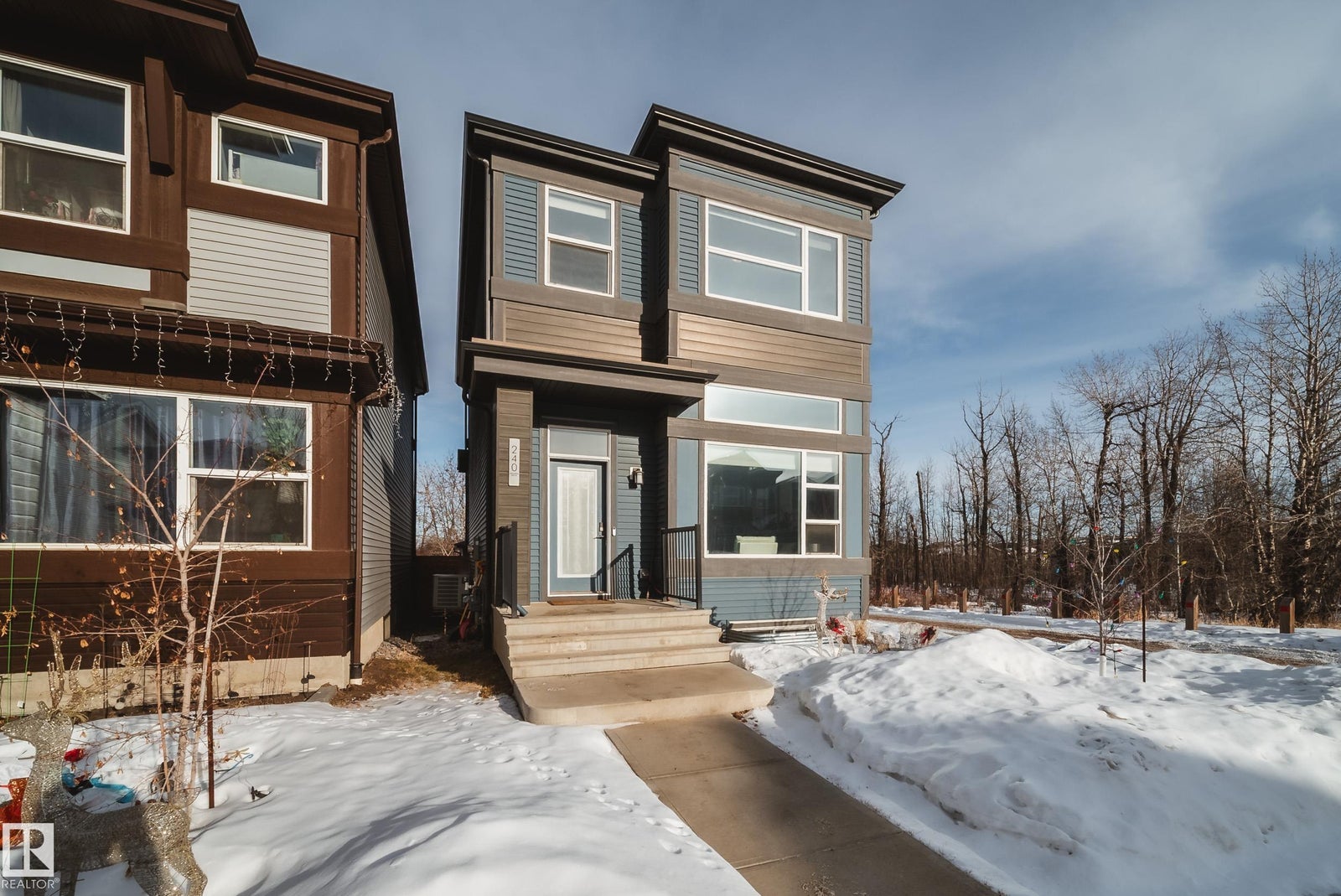 Designed with intention, this rare two-storey Charlesworth gem impresses at every turn. Privacy is exceptional with only one neighbour, while mature trees and reserve surround the home on all other sides. A sunny front yard welcomes you into a striking foyer showcasing soaring 12-ft ceilings and an abundance of windows that flood the home with natural light. The contemporary layout blends generous, functional spaces with refined design, featuring a custom accent wall, oversized eat-in kitchen with large breakfast peninsula, and a thoughtfully planned back entry. Upstairs offers three bedrooms, including a spacious primary suite with walk-through closet connected to convenient upper-floor laundry with added enclosed storage. The ensuite, oversized double-door linen closet, and two well-proportioned bedrooms complete the level. The basement has 12 ft ceilings and another bedroom and bathroom! This home is ready for YOU!