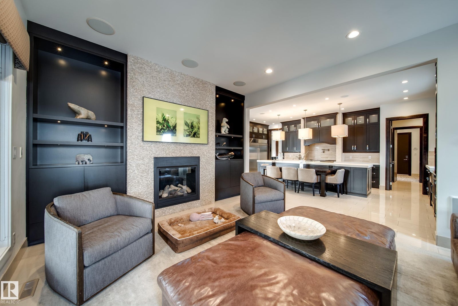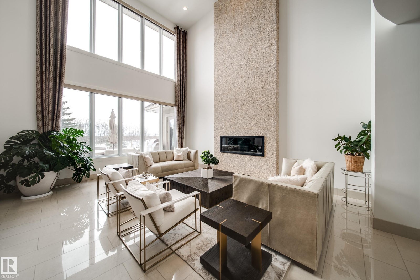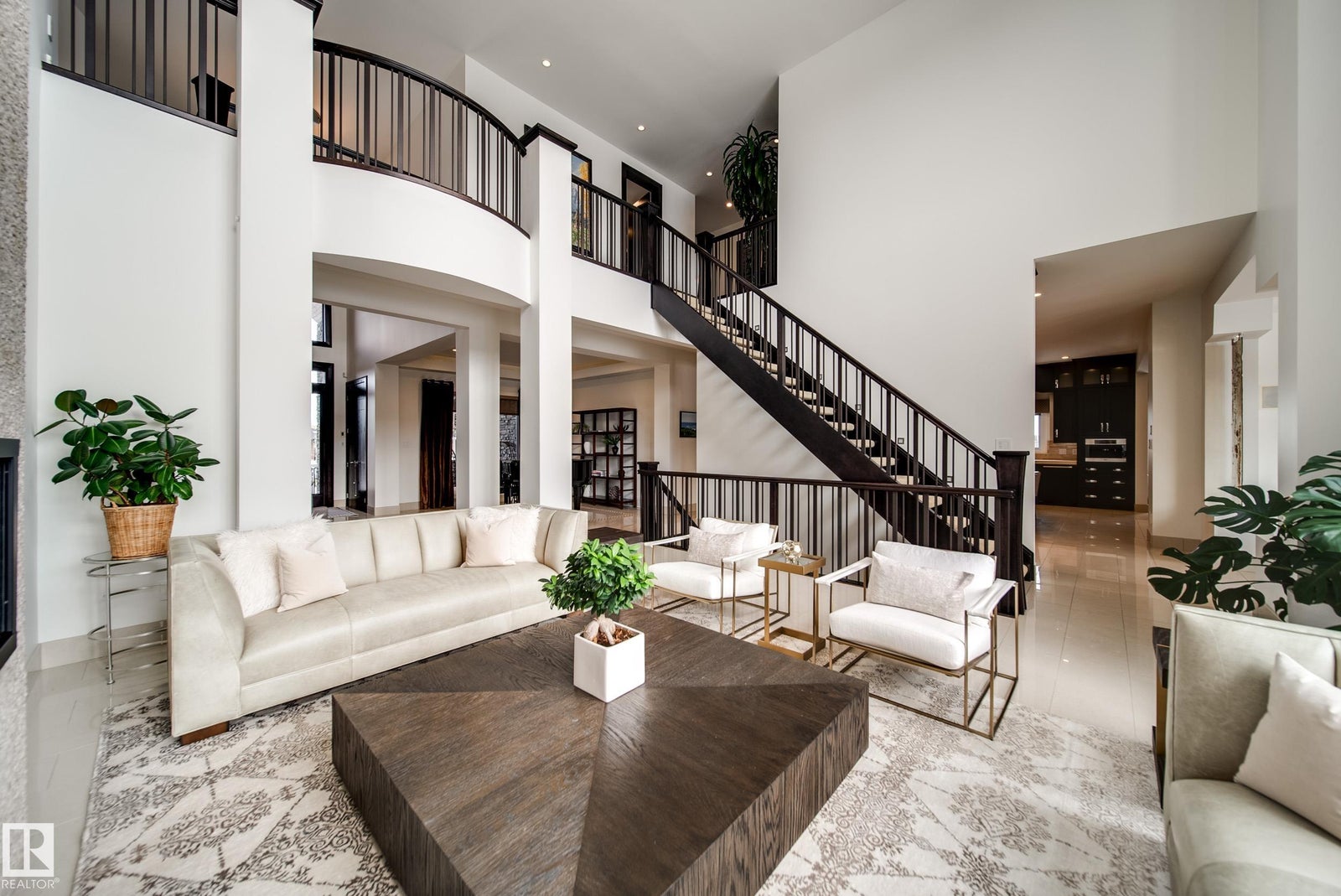 Luxury living in prestigious Blackhawk Estates, just 15 minutes southwest of Edmonton. Situated on a beautifully landscaped 1-acre lot, this exceptional two-storey home backs onto the North Saskatchewan River and fronts the 4th fairway of the renowned Blackhawk Golf Club—hop in your golf cart and head to the course. Offering over 9,000 sq ft of living space with 6,041 sq ft above grade, the home features a main-floor primary retreat with spa-inspired ensuite and dual walk-in closets, plus a private office. Expansive living areas include a chef’s kitchen with dining area and cozy living room. A formal great room, wine cellar, and five fireplaces, including a wood-burning fireplace in the three-season room, add warmth and elegance. Upstairs offers 3 bedrooms plus a flex room, while the basement includes a theatre, gym, games area with mini hockey rink, rec room, and bedroom. A true car enthusiast’s dream, the 2,400 sq ft garage features vaulted ceilings and a wash bay. This is the best of acreage living!