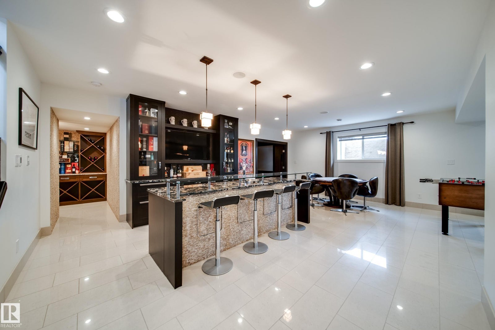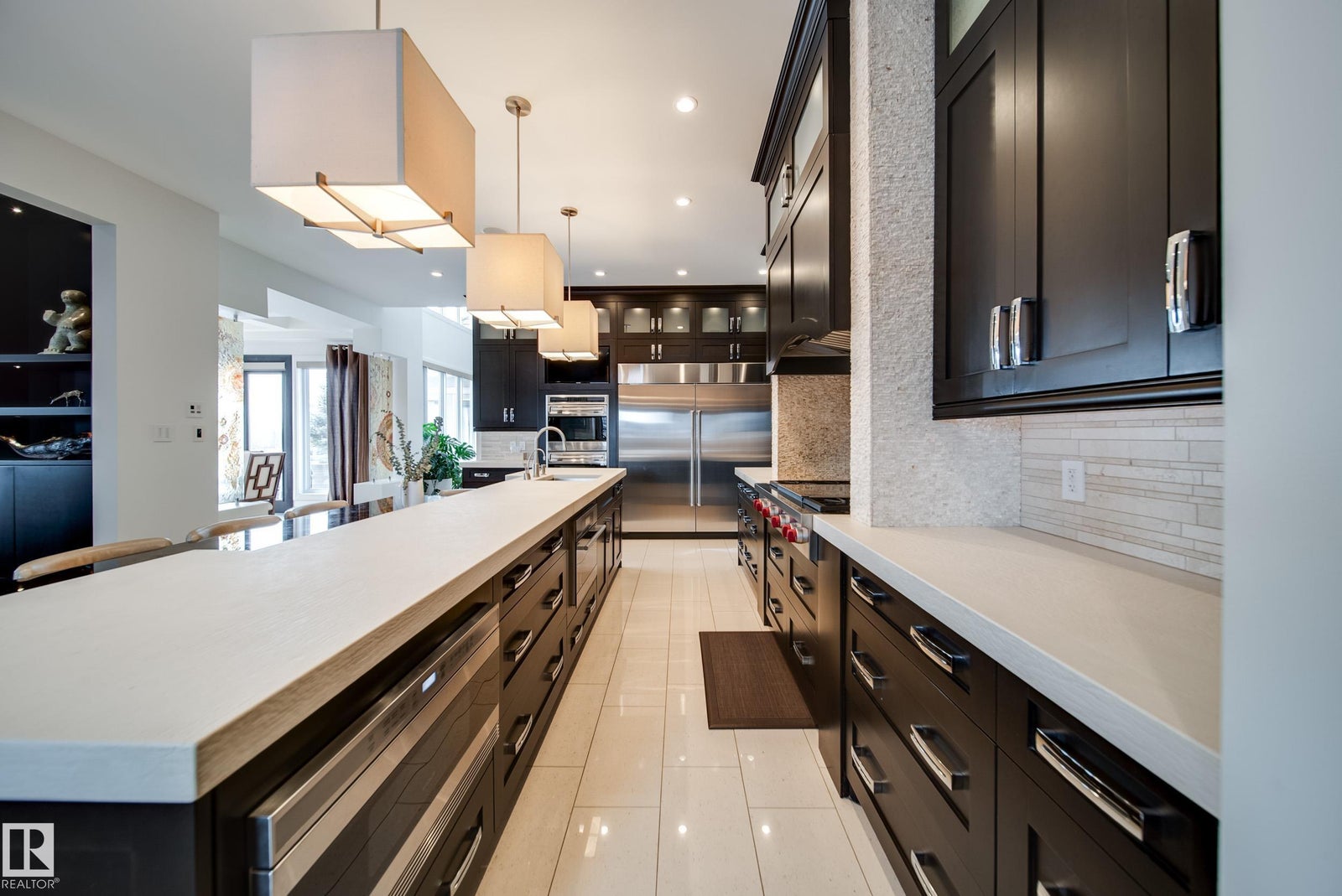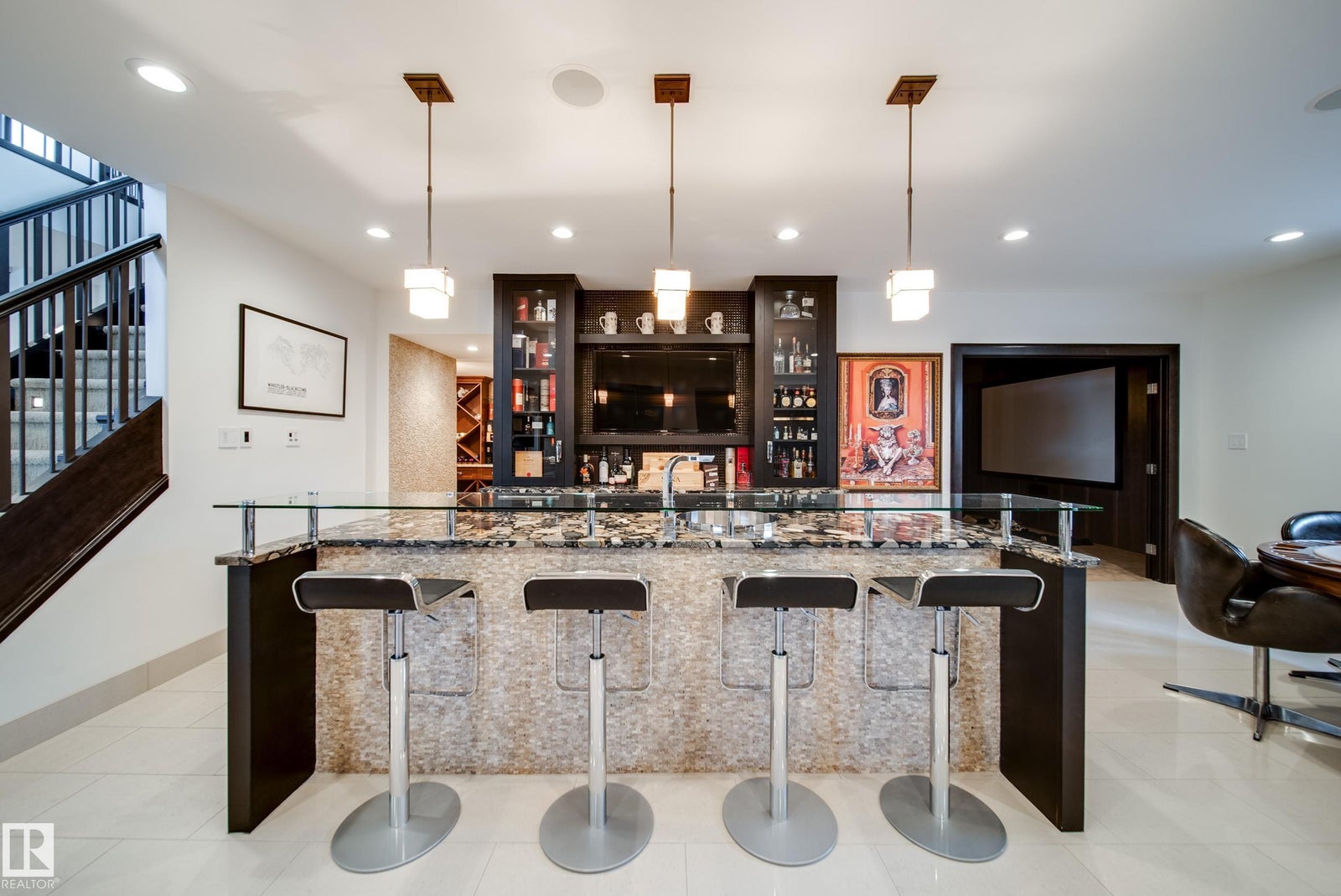 Luxury living in prestigious Blackhawk Estates, just 15 minutes southwest of Edmonton. Situated on a beautifully landscaped 1-acre lot, this exceptional two-storey home backs onto the North Saskatchewan River and fronts the 4th fairway of the renowned Blackhawk Golf Club—hop in your golf cart and head to the course. Offering over 9,000 sq ft of living space with 6,041 sq ft above grade, the home features a main-floor primary retreat with spa-inspired ensuite and dual walk-in closets, plus a private office. Expansive living areas include a chef’s kitchen with dining area and cozy living room. A formal great room, wine cellar, and five fireplaces, including a wood-burning fireplace in the three-season room, add warmth and elegance. Upstairs offers 3 bedrooms plus a flex room, while the basement includes a theatre, gym, games area with mini hockey rink, rec room, and bedroom. A true car enthusiast’s dream, the 2,400 sq ft garage features vaulted ceilings and a wash bay. This is the best of acreage living!
