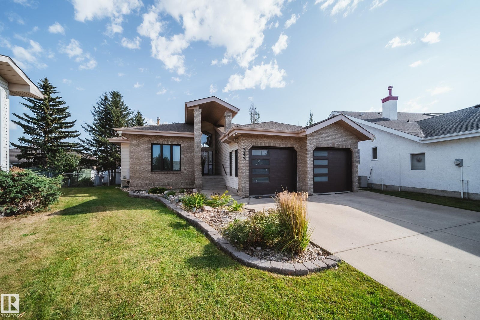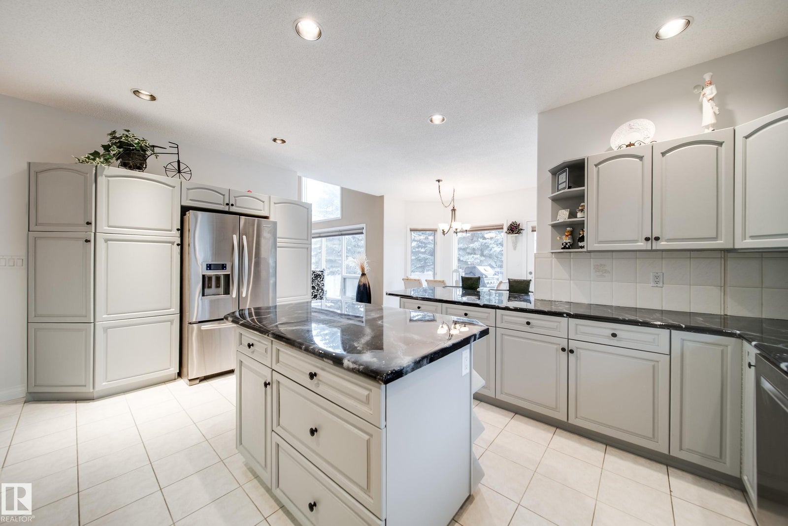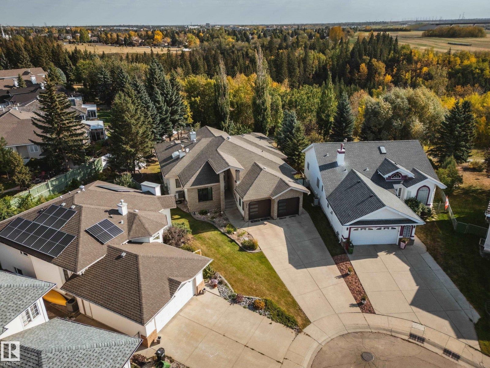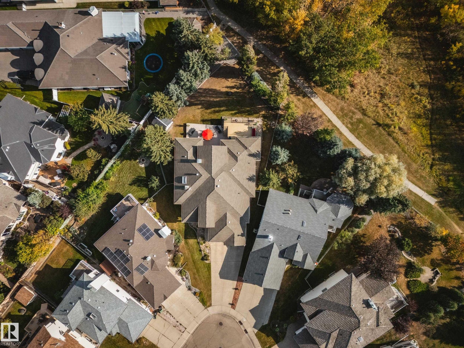 Absolutely stunning 2373 sqft bungalow backing directly onto Blackmud Creek Ravine—this is the one you’ve been waiting for. Located in a quiet cul-de-sac in desirable Twin Brooks, this rare pie-shaped lot offers a beautifully landscaped, oversized backyard with direct access to scenic walking and biking trails. Inside, the home offers 2 beds up plus den, 2 more beds down plus flex room, is bright and spacious with 9’ ceilings throughout and vaulted ceilings in the foyer and great room. The formal dining area with pillars is perfect for entertaining, while the expansive kitchen features solid oak cabinetry and abundant counter space. The fully developed basement is exceptional, offering 9’ ceilings, large windows, two furnaces, & incredible flexibility. Complete with a wet bar, full-size fridge, dishwasher, built-in sound wiring, three bedrooms, massive storage, and cold room. With central A/C and an unbeatable ravine location, this is a rare opportunity in one of Edmonton’s most sought-after communities.