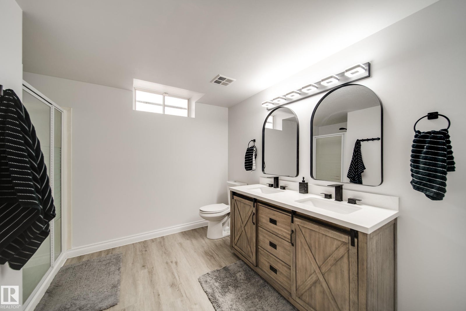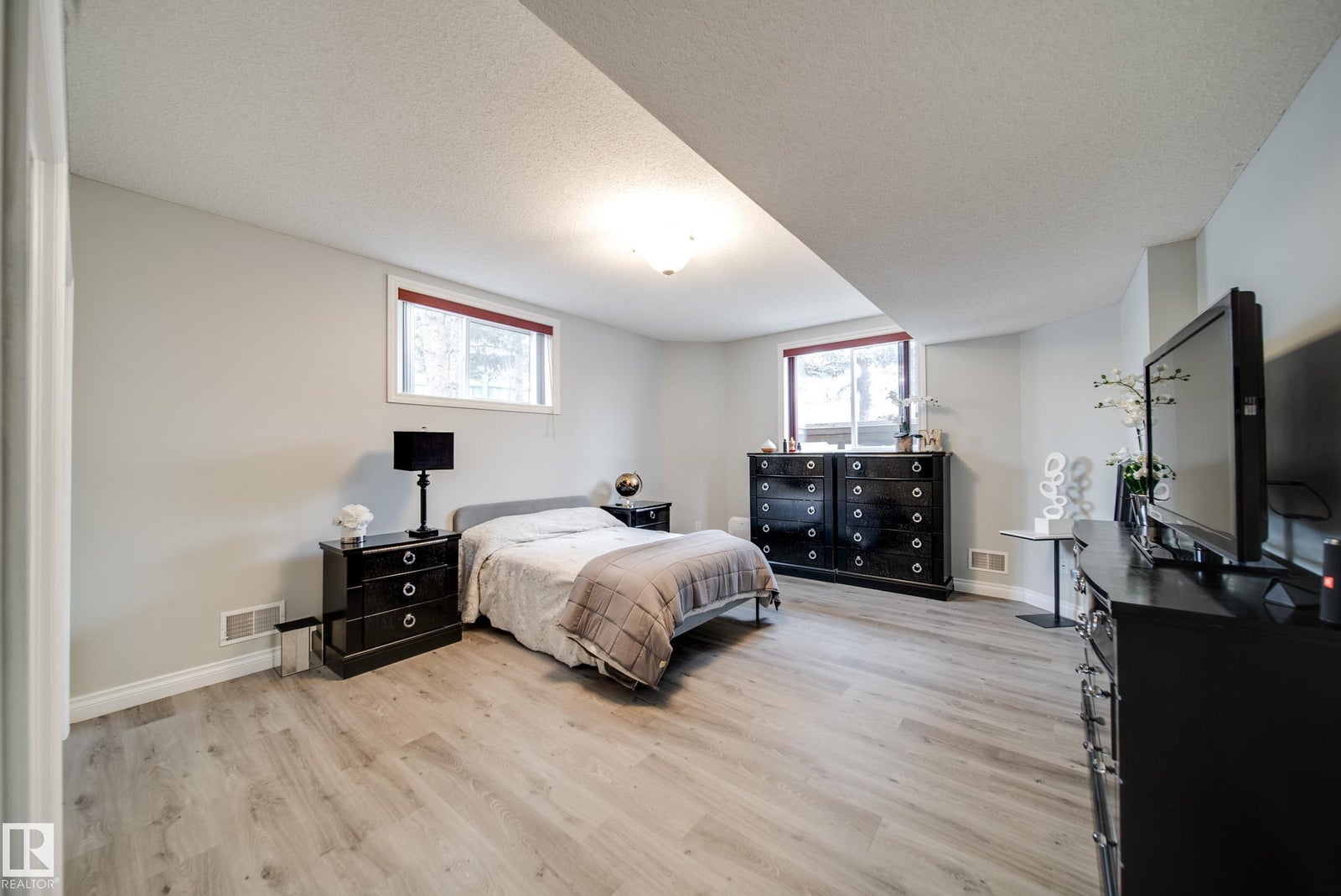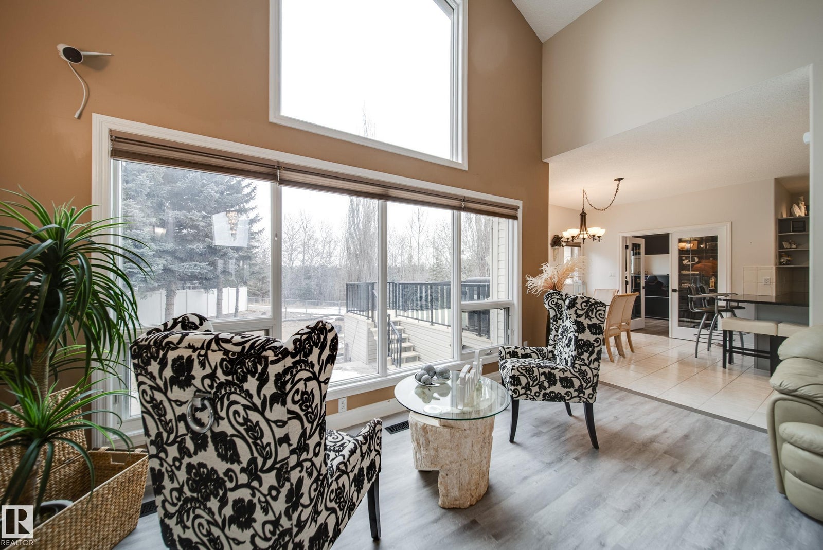 Absolutely stunning 2373 sqft bungalow backing directly onto Blackmud Creek Ravine—this is the one you’ve been waiting for. Located in a quiet cul-de-sac in desirable Twin Brooks, this rare pie-shaped lot offers a beautifully landscaped, oversized backyard with direct access to scenic walking and biking trails. Inside, the home offers 2 beds up plus den, 2 more beds down plus flex room, is bright and spacious with 9’ ceilings throughout and vaulted ceilings in the foyer and great room. The formal dining area with pillars is perfect for entertaining, while the expansive kitchen features solid oak cabinetry and abundant counter space. The fully developed basement is exceptional, offering 9’ ceilings, large windows, two furnaces, & incredible flexibility. Complete with a wet bar, full-size fridge, dishwasher, built-in sound wiring, three bedrooms, massive storage, and cold room. With central A/C and an unbeatable ravine location, this is a rare opportunity in one of Edmonton’s most sought-after communities.