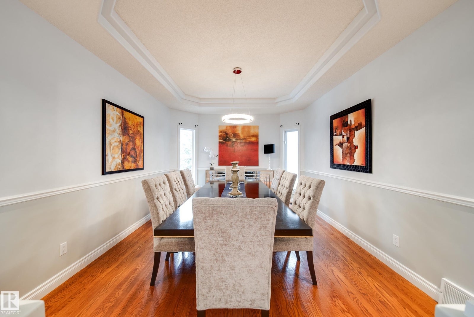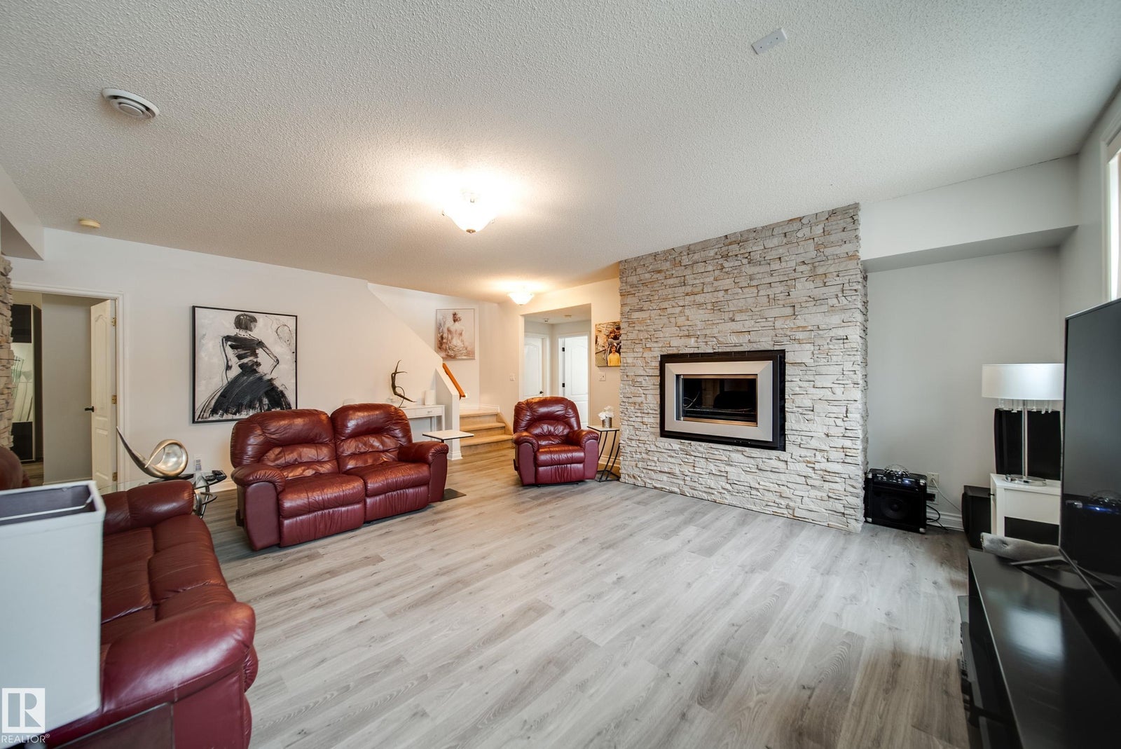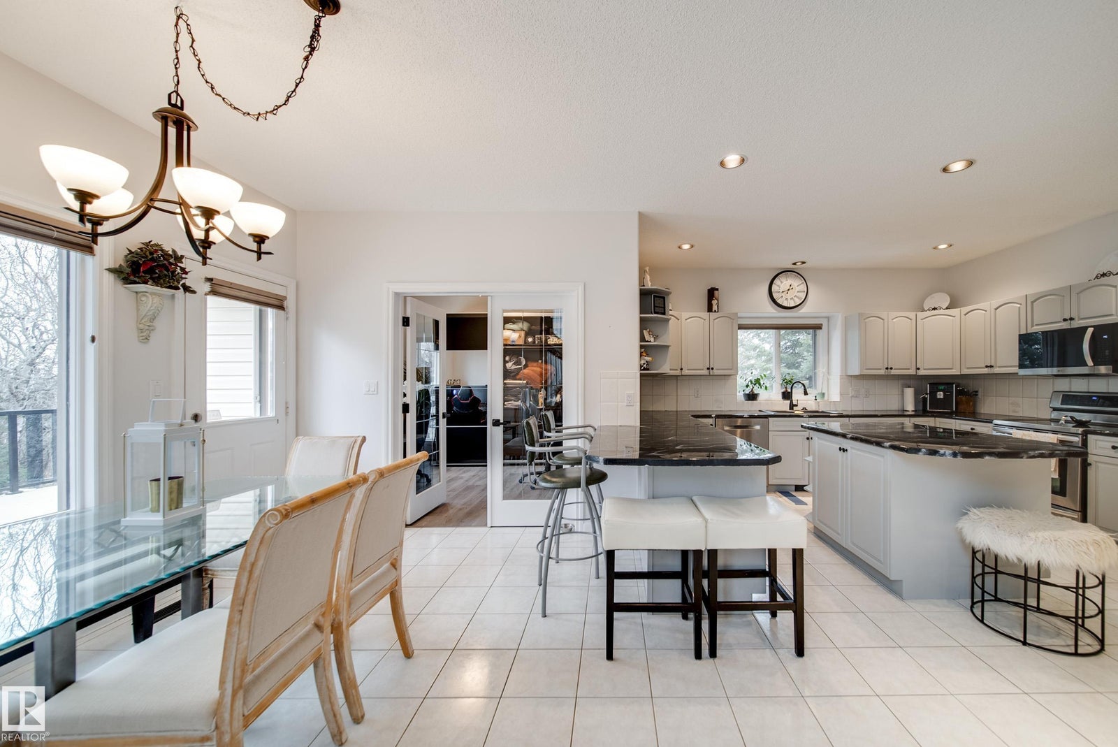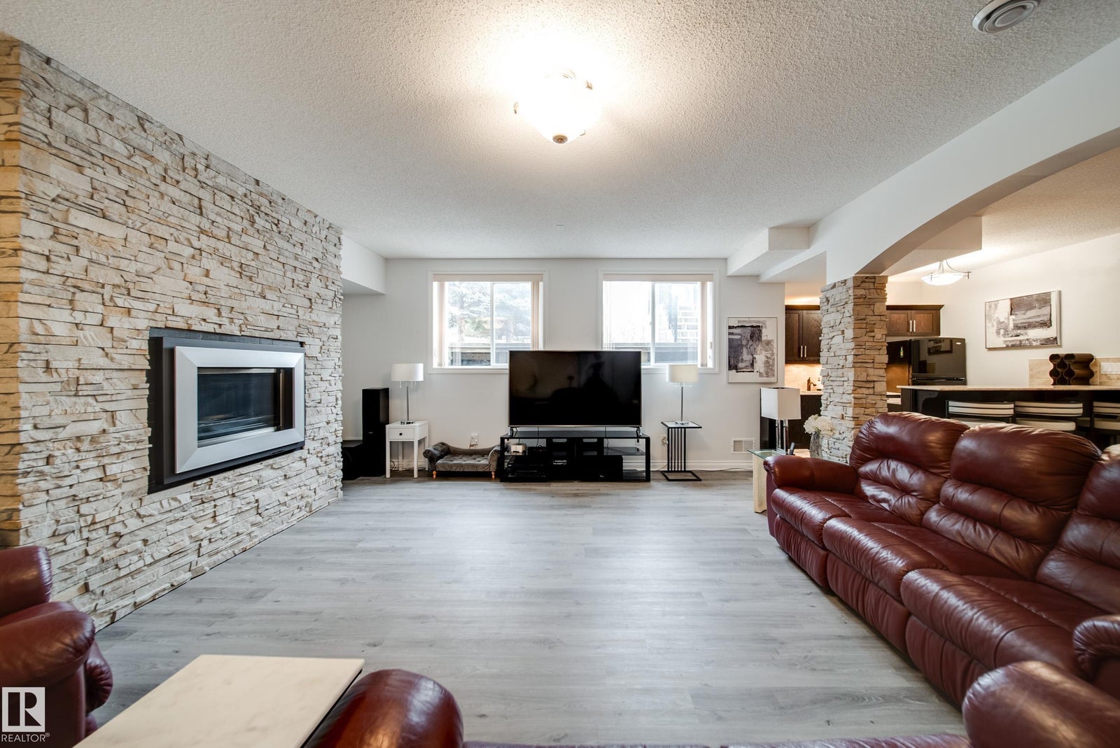 Absolutely stunning 2373 sqft bungalow backing directly onto Blackmud Creek Ravine—this is the one you’ve been waiting for. Located in a quiet cul-de-sac in desirable Twin Brooks, this rare pie-shaped lot offers a beautifully landscaped, oversized backyard with direct access to scenic walking and biking trails. Inside, the home offers 2 beds up plus den, 2 more beds down plus flex room, is bright and spacious with 9’ ceilings throughout and vaulted ceilings in the foyer and great room. The formal dining area with pillars is perfect for entertaining, while the expansive kitchen features solid oak cabinetry and abundant counter space. The fully developed basement is exceptional, offering 9’ ceilings, large windows, two furnaces, & incredible flexibility. Complete with a wet bar, full-size fridge, dishwasher, built-in sound wiring, three bedrooms, massive storage, and cold room. With central A/C and an unbeatable ravine location, this is a rare opportunity in one of Edmonton’s most sought-after communities.