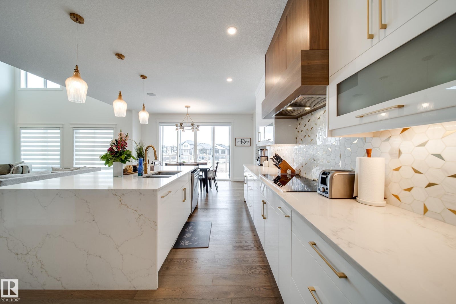 SPRUCE GROVE’S FINEST! 2672 SQFT with a TRIPLE ATTACHED HEATED GARAGE, WALKOUT BASEMENT backing onto the pond, CENTRAL A/C, 4 BEDROOMS and so much more! Welcome to Fenwyck, a family-friendly community with scenic walking trails and all major amenities just minutes away—only 15 minutes to West Edmonton. This thoughtfully designed floor plan features a main floor den/4th bedroom with direct access to a full bath, an open-to-below living room, and a show-stopping kitchen. Enjoy ample cabinetry and counter space, built-in appliances, quartz countertops, and a walk-through pantry leading to a functional mudroom. Upstairs offers a bonus room wired for sound, convenient laundry, and 3 bedrooms—two with their own ensuites. The primary suite overlooks the pond and park, and features a large walk-in closet and a spa-inspired ensuite with jetted tub and steam shower. The unfinished basement is ready for your future vision. Let’s make this exceptional home yours today!
